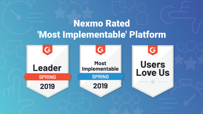 That’s why we’re so proud that our customers have rated Nexmo, the Vonage API Platform, as a leader in ease of setup, implementation time, and user adoption. G2 Crowd, the leading B2B software rating service, has just released its Spring 2019 Grid Report, an aggregate rating of user satisfaction based on submitted reviews. In the Cloud Communication Platforms category, Nexmo emerged as the “Most Implementable” product (see full Implementation Index report).